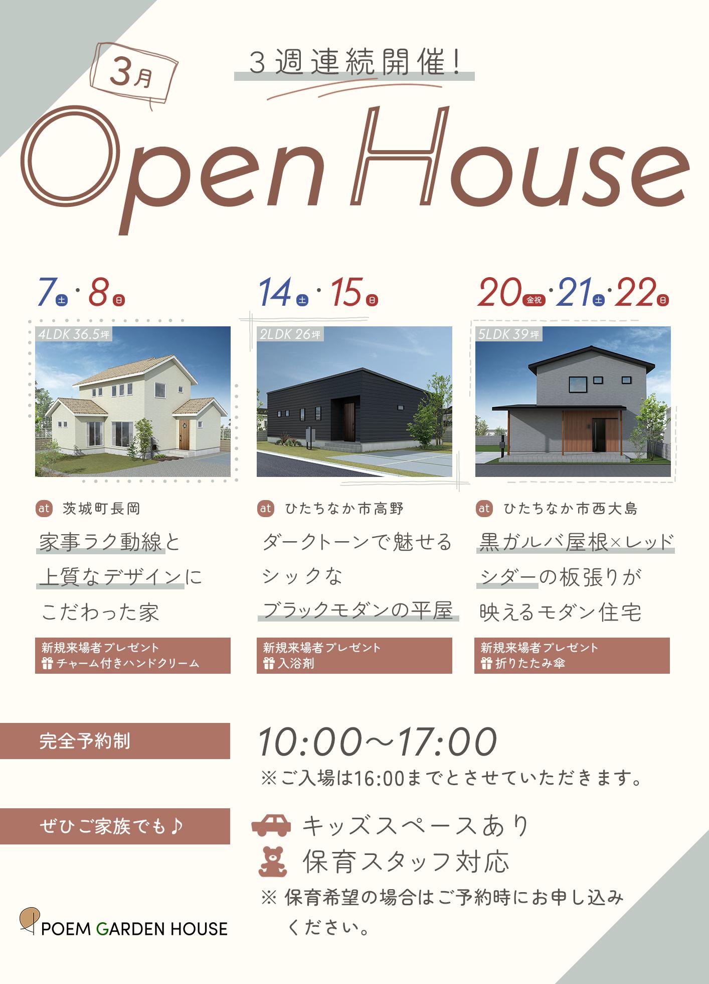 2026/3/14(土) , 15(日) ※完全予約制 ※3/9(月)~13(金)も、事前予約にてご案内させていただきます。 |